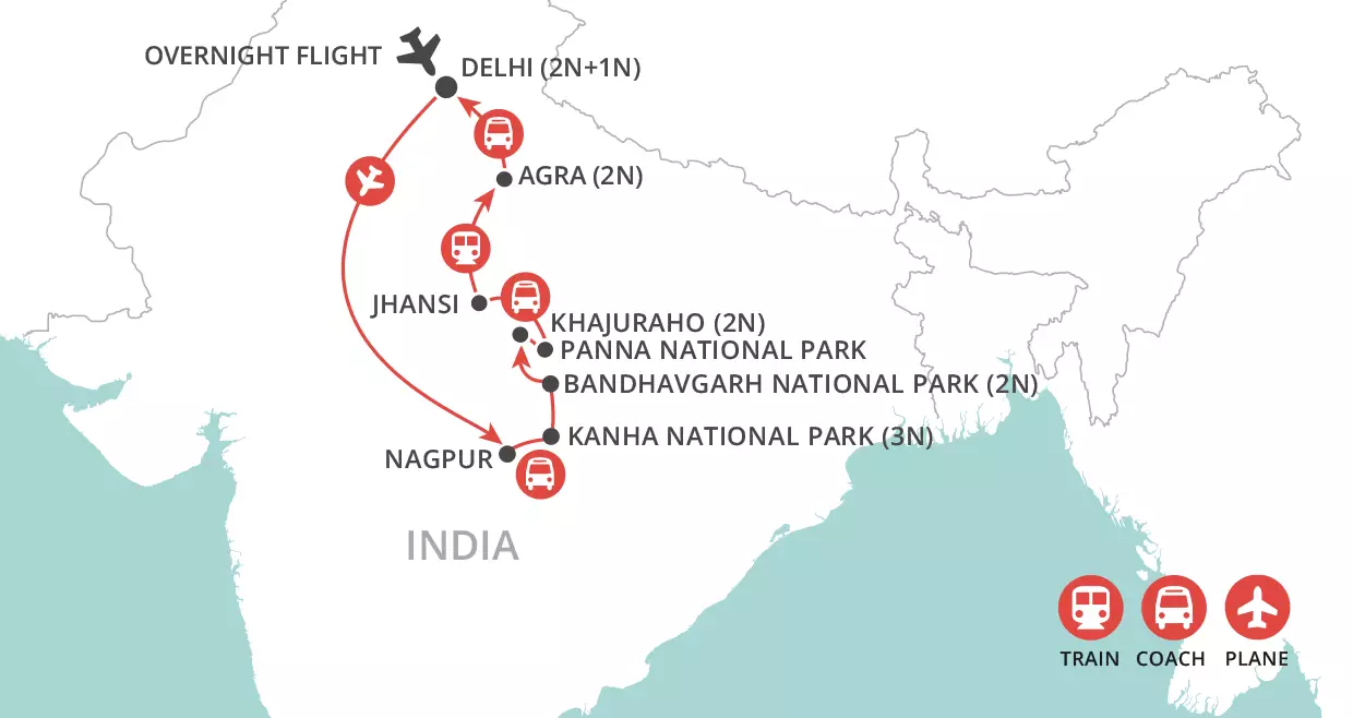 Place to visit: Delhi (2N) - Kanha (3N) - Bandhavgarh (2N) - Khajuraho (2N) - Agra (2N) - Delhi (1N)