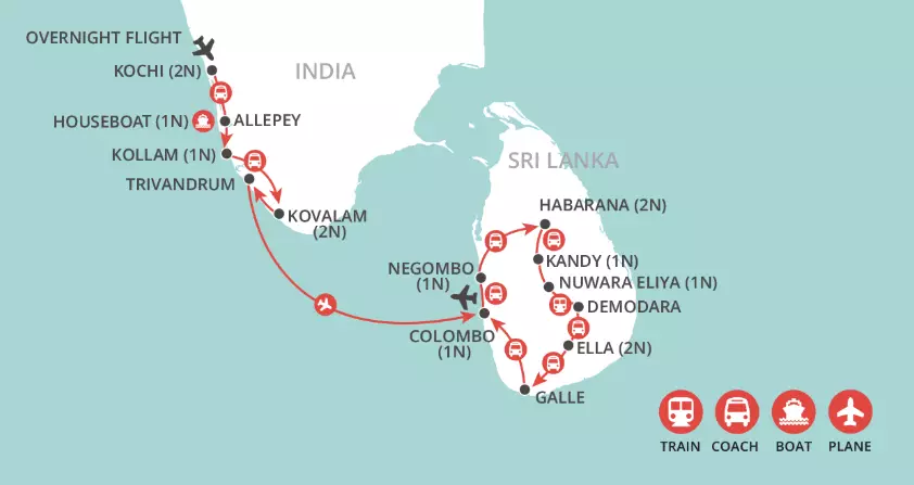 Place to visit: UK - Kochi (2N) - Houseboat (1N) - Kollam (1N) - Kovalam (2N) - Negombo (1N) - Habarana (2N) - Kandy (1N) - Nuwara Eliya (1N) - Ella (2N) - Colombo (1N) - UK