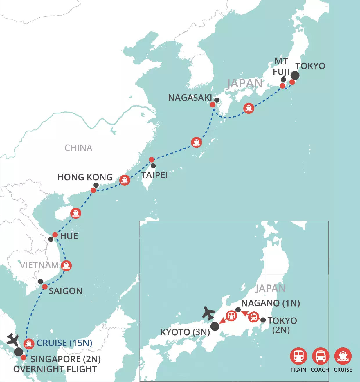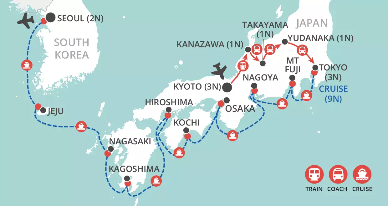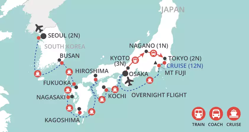 Explore the icons of Japan. Discover the delights of vibrant Tokyo, the ultimate futuristic cityscape, admire breath-taking Mount Fuji the icon of Japan, explore Japan's ancient history in Kyoto and its more sobering recent past in Horoshima. Off the beaten track, explore the delights of the Japanese Alps, unearth the unique cultural mix of Kyushu and the unspoilt natural beauty of Hokaido.